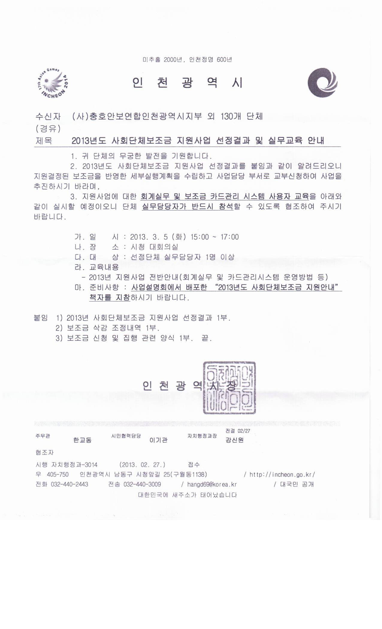 2013 ÀÎõ±¤¿ª½Ã »çȸ´Üüº¸Á¶±Ý Áö¿ø»ç¾÷ ¼±Á¤
